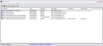 IE PassViewの利用は簡単で、ダウンロードして起動するだけです。するとWebサイトのURLや、パスワードの種類、パスワードの保存場所(レジストリなど)、ユーザー名、パスワードなどが表示されます。各レコードをダブルクリックすると別画面(プロパティ)で情報が表示され、コピーして任意のWebサイトにペースト(貼り付け)できます。利用しなくなったパスワードはFileのDelete Selected Itemsメニューで削除できます。